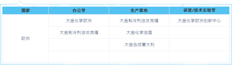 大金氟化工(中国)有限公司 公司成立于2001年4月,生产基地位于江苏省常熟新材料产业园,并在北京、上海、广州、深圳设有分公司。主要从事氟化工产品的生产加工、销售,并提供售后服务与技术服务。